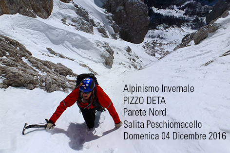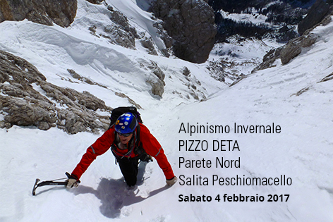 Sabato 4 febbraio 2017 Alpinismo Invernale - PIZZO DETA (m.2041) Parete Nord (Peschiomacello) da Prato di Campoli (m.1134). Avvicinamento attraverso il Sentiero 10 (Guida "Prato di Campoli", Aut. Mastronicola). Dislivello Tot: m. 957 - Sviluppo salita Alpinistica: m. 400