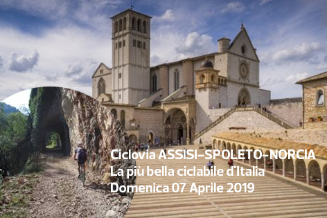 Domenica 7 Aprile 2019 MTB - Ciclovia Assisi - Spoleto - Norcia; Partenza dalla Basilica di Assisi, attraversamento della bellissima Valle Umbra, le Fonti del Clitunno (Patrimonio Unesco) - Spoleto, tracciato ex ferrovia superando i monti per gallerie e viadotti - Norcia. Programma: Assisi- San Damiano Sacro Tugurio Rivotorto - Cannara - Bevagna - Foligno - Montefalco - Trevi - Clitunno - Spoleto (Km 110) - Caprareccia - Norcia Partenza da Frosinone ore 6.30 con Furgone per trasporto Bici.