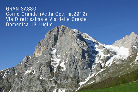 Domenica 2 Luglio 2017 Integrale Direttissima Gran Sasso - Vetta Occidentale (m.2912) - da Fonte Cerreto (Assergi, m.1120) - Dislivello: m.1800