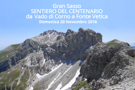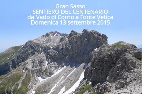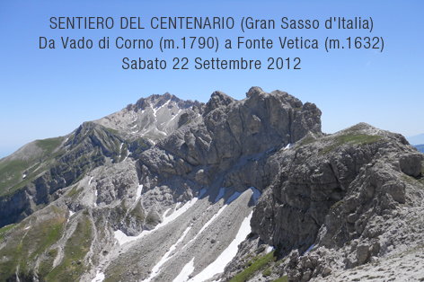 Domenica 13 Settembre 2015 Gran Sasso SENTIERO DEL CENTENARIO da Vado di Corno (1790) a Fonte Vetica (m.1632). Dislivello: in Salita m.1330, in discesa m.1570. Partenza da Frosinone ore 7.00