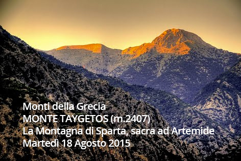 Martedì 18 Agosto 2015 Monti della Grecia MONTE TAYGETOS - Cima Profeta Elia (m.2407) Il balcone del Peloponneso, la montagna Sacra di Artemide e Sparta. Partenza dall'Ilaeira Mountain Resort (dove ceneremo e pernotteremo), Sorgente Manganiari (m.980).