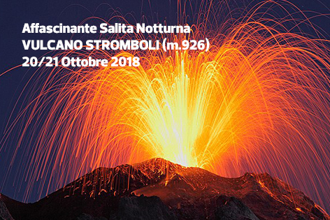 19/20/21 Ottobre 2018 Salita al VULCANO STROMBOLI (m.926) - Nulla è più affascinante dello spettacolo notturno offerto da un vulcano perennemente attivo. Percorso più bello, da Ginostra per la Sciara del Fuoco.Dislivello: m. 920 Tempo salita: 3 ore Viaggio in Minibus privato Rientro previsto a Frosinone, Lunedì 22/10 ore 03.30 LEGGI IL PROGRAMMA